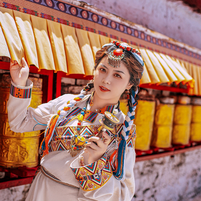 包含一套藏式服装,一次精致妆容造型(含假睫毛、花瓣、水钻、油彩彩绘等,无二次收费),含道具哈达、转经筒、面具、红头巾、串珠等。拍摄底片40张,精修10张。)