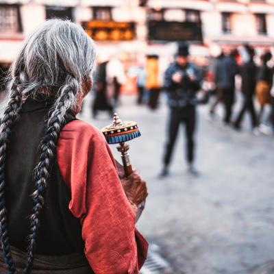 八廓街作为围绕大昭寺周围的大片旧式老街区,也是藏族群众心中重要的一条转经道,不同地区的藏民穿着不同的特色服饰,顺时针同走这条环形路。