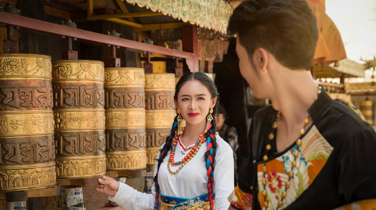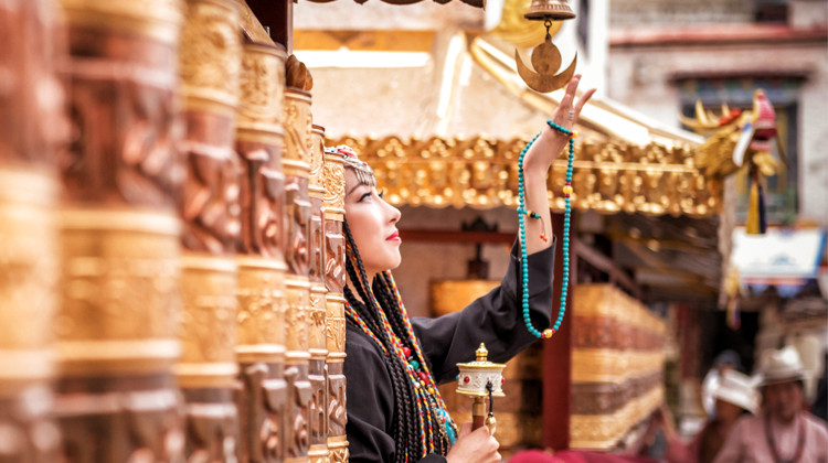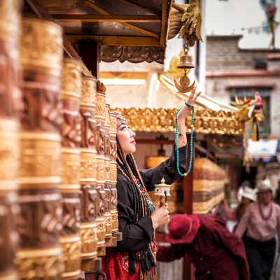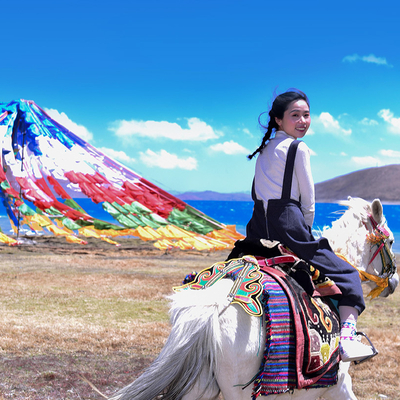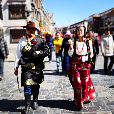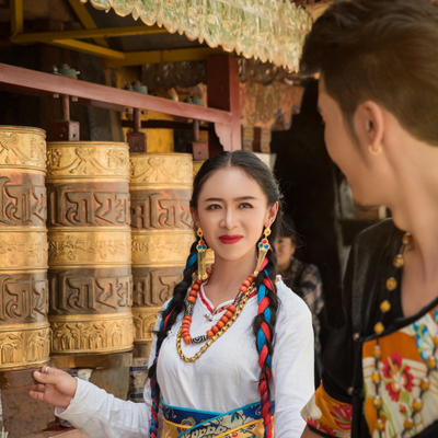 藏装旅拍(399套餐拍摄布达拉宫或者大昭寺八廓街二选一(5个小景点),包含一套藏式服装,一次精致妆容造型(含假睫毛、花瓣、水钻、油彩彩绘等,无二次收费),含道具哈达、转经筒、面具、红头巾、串珠等。拍摄底片40张,精修10张。)